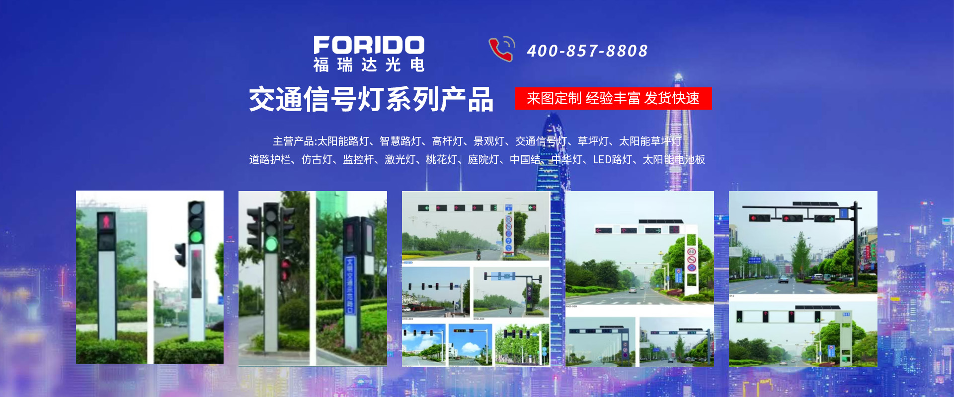 揚州福瑞達光電科技有限公司位于淮左名都歷史文化名城、中國路燈制造基地揚州市北郊菱塘工業園,公司占地面積76000平方米,注冊資金10518萬元,擁有高級技術嫻熟的員工280多人,擁有大型折彎機、激光切割、數控注塑機、壓鑄機、自動埋弧焊、氣焊、彩色粉末靜電噴塑等大型自動化設備,我公司是一家集設計、研發(fā)、生產、銷售、施工安裝服務為一體的戶外交通照明產品制造商,主要生產智慧路燈、太陽能路燈、LED路燈、高桿燈、景觀燈、交通信號燈、交通標志牌、通信鐵塔、路跨鋼結構、公交站臺、太陽能光伏組件、景點亮化、樓宇亮化工程的設計施工等。公司秉承開拓創新、銳意進取、精誠服務的企業精神,堅持以“誠信為本、技術為先、服務是金”的合作理念,我們憑借先進的制造工藝、優(yōu)質的產品質量、合理的市場價格和完善的售后服務贏得了廣闊的市場和客戶的信賴。 我公司已通過ISO9001質量體系認證、ISO14001環(huán)境管理體認證,CQC產品認證,中國節(jié)能產品認證,通過“CCC”強制性產品認證,具有市政總承包,照明,交安,設計等資質···